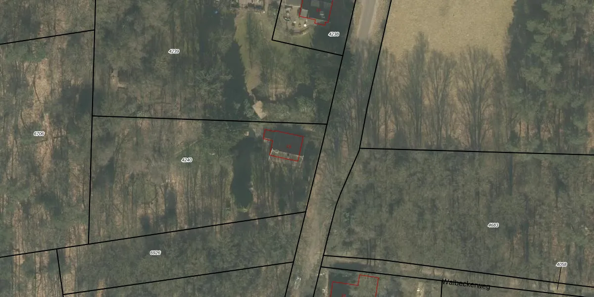 Het perceel waarop Walbeckerweg 15 staat heeft een oppervlakte van 2710 m². Dit is een zeer groot perceel. De perceeloppervlakte wordt geregistreerd door het Kadaster. Gedetailleerde informatie over de maten van dit perceel kunt u vinden in het rapport Kadastrale kaart met maatvoering van Walbeckerweg 15.