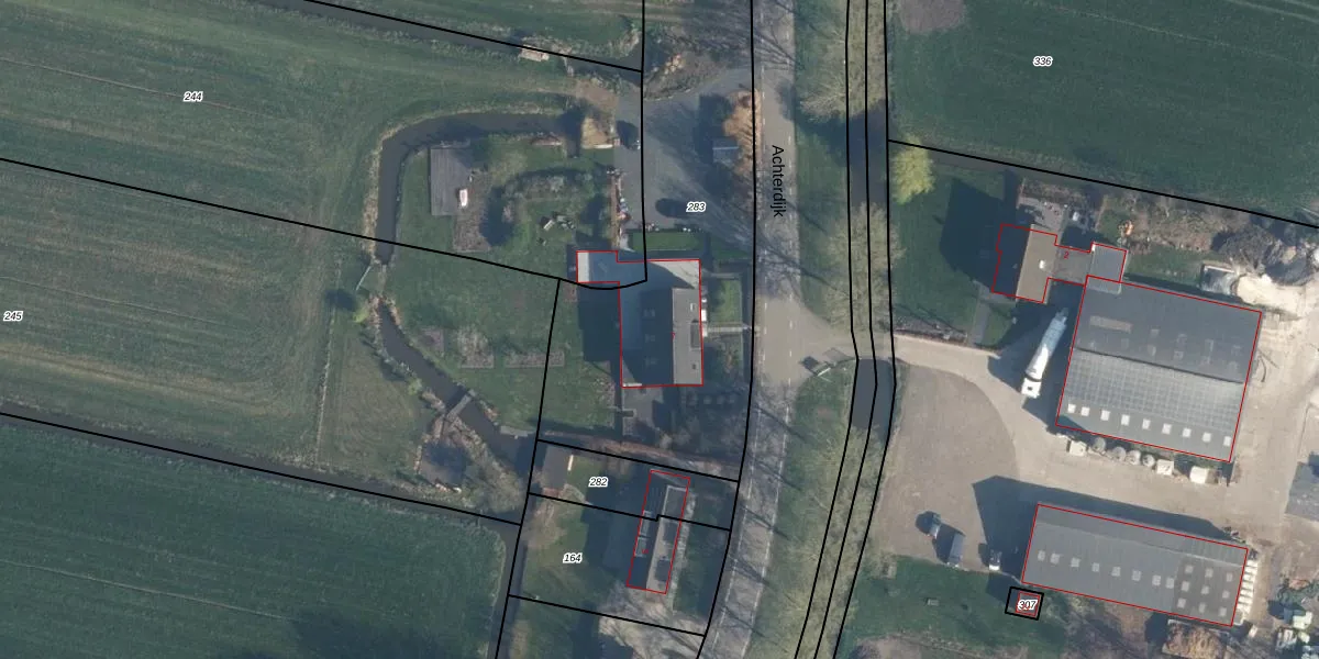 Het perceel waarop Achterdijk 7 staat heeft een oppervlakte van 2101 m². Dit is een zeer groot perceel. De perceeloppervlakte wordt geregistreerd door het Kadaster. Gedetailleerde informatie over de maten van dit perceel kunt u vinden in het rapport Kadastrale kaart met maatvoering van Achterdijk 7.