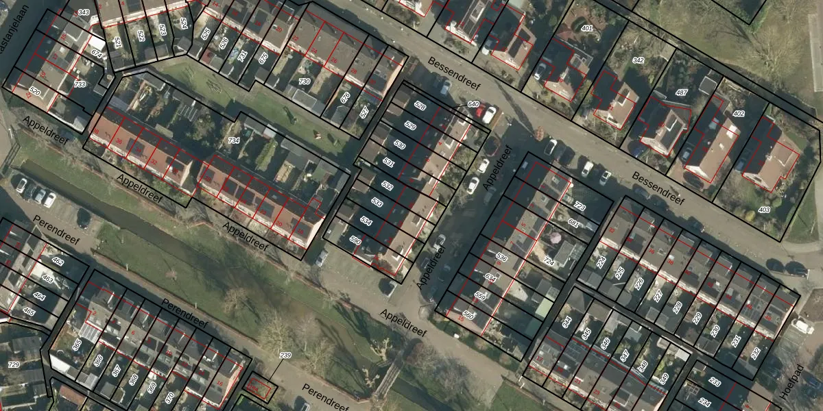 Gebruik de zoekbalk of klik op een perceel voor informatie over de adressen binnen dit perceel.