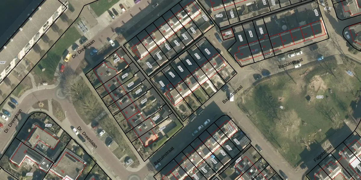 Het perceel waarop Bazuinstraat 36 staat heeft een oppervlakte van 173 m². Dit is een middelgroot perceel. De perceeloppervlakte wordt geregistreerd door het Kadaster. Gedetailleerde informatie over de maten van dit perceel kunt u vinden in het rapport Kadastrale kaart met maatvoering van Bazuinstraat 36.