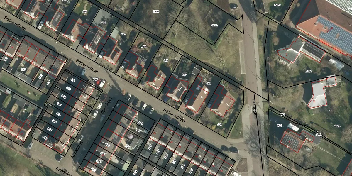 Gebruik de zoekbalk of klik op een perceel voor informatie over de adressen binnen dit perceel.