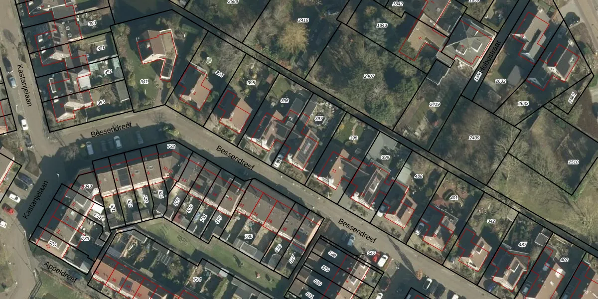 Gebruik de zoekbalk of klik op een perceel voor informatie over de adressen binnen dit perceel.