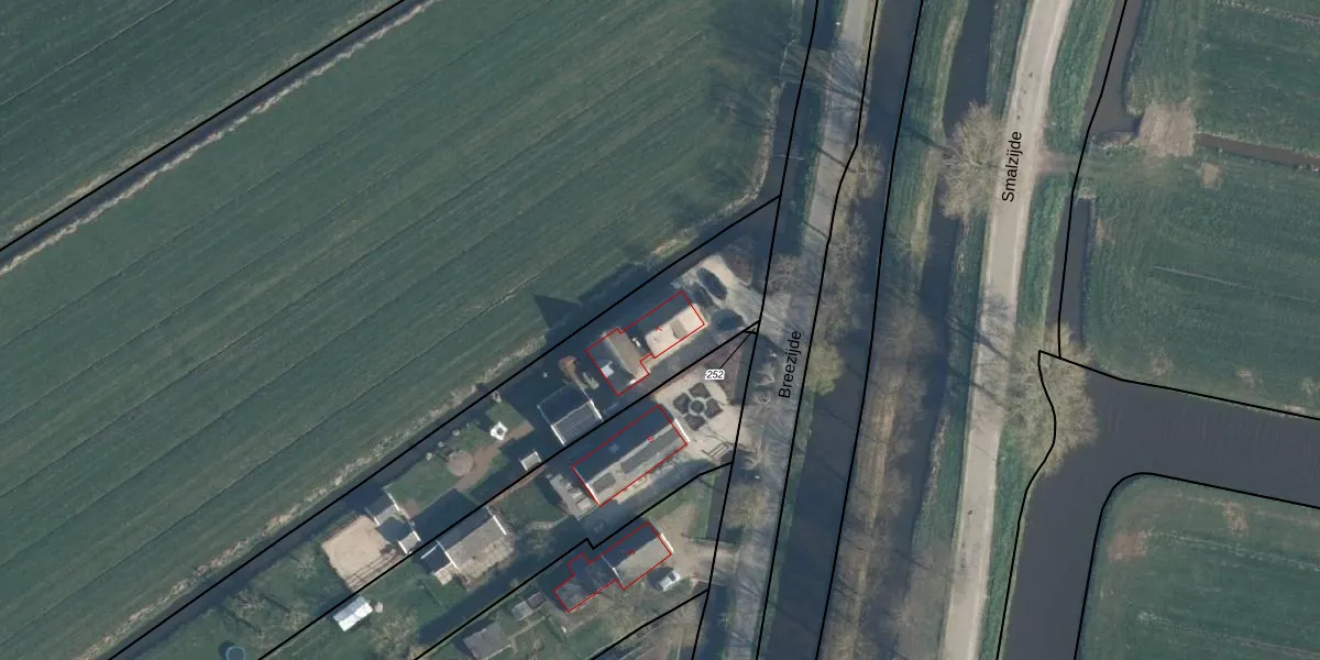 Het perceel waarop Breezijde 7 staat heeft een oppervlakte van 2475 m². Dit is een zeer groot perceel. De perceeloppervlakte wordt geregistreerd door het Kadaster. Gedetailleerde informatie over de maten van dit perceel kunt u vinden in het rapport Kadastrale kaart met maatvoering van Breezijde 7.