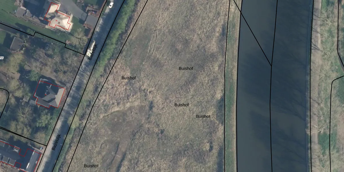 Het perceel waarop Buishof 5 staat heeft een oppervlakte van 9,0 ha. Dit is een zeer groot perceel. De perceeloppervlakte wordt geregistreerd door het Kadaster. Gedetailleerde informatie over de maten van dit perceel kunt u vinden in het rapport Kadastrale kaart met maatvoering van Buishof 5.