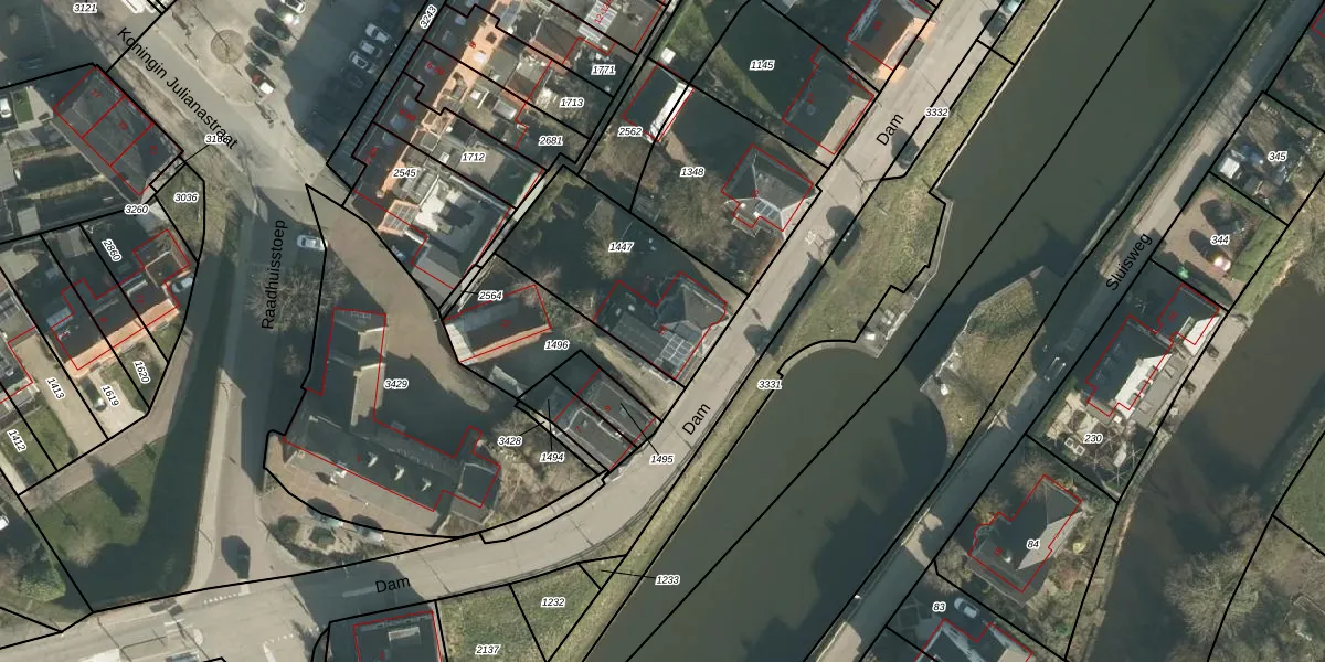 Het perceel waarop Dam 13 staat heeft een oppervlakte van 590 m². Dit is een groot perceel. De perceeloppervlakte wordt geregistreerd door het Kadaster. Gedetailleerde informatie over de maten van dit perceel kunt u vinden in het rapport Kadastrale kaart met maatvoering van Dam 13.