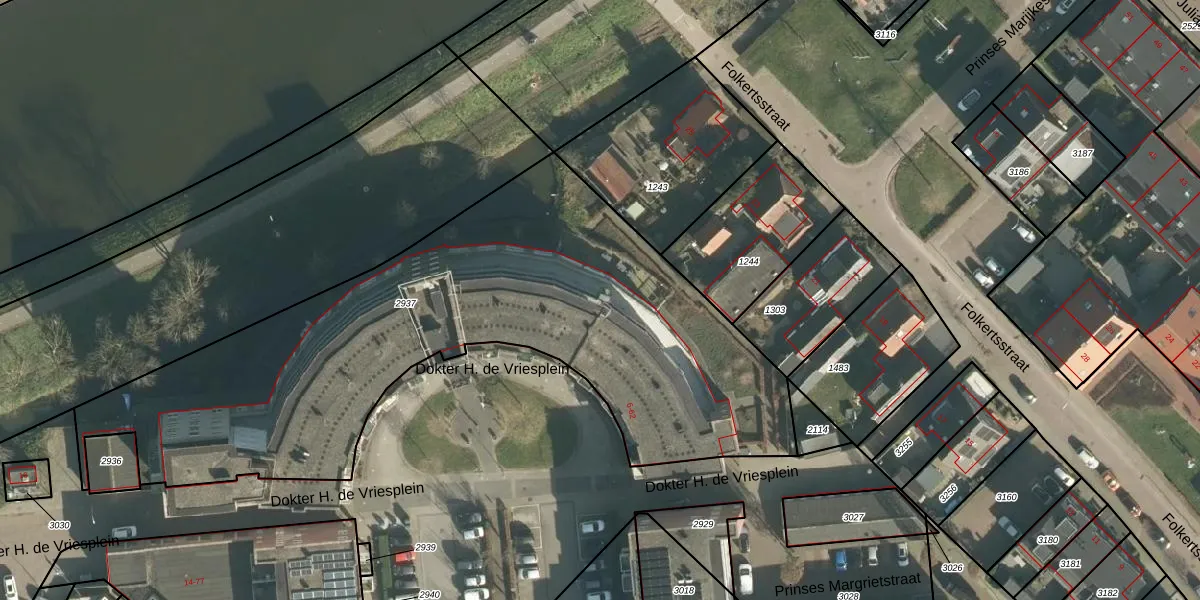 Het perceel waarop Dokter H. de Vriesplein 46 staat heeft een oppervlakte van 2950 m². Dit is een zeer groot perceel. De perceeloppervlakte wordt geregistreerd door het Kadaster. Gedetailleerde informatie over de maten van dit perceel kunt u vinden in het rapport Kadastrale kaart met maatvoering van Dokter H. de Vriesplein 46.