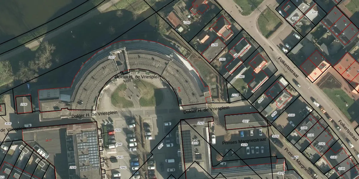Het perceel waarop Dokter H. de Vriesplein 6 staat heeft een oppervlakte van 2950 m². Dit is een zeer groot perceel. De perceeloppervlakte wordt geregistreerd door het Kadaster. Gedetailleerde informatie over de maten van dit perceel kunt u vinden in het rapport Kadastrale kaart met maatvoering van Dokter H. de Vriesplein 6.