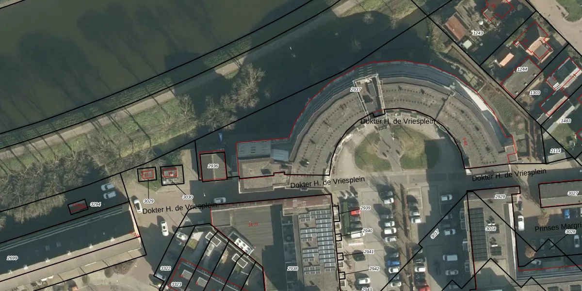Het perceel waarop Dokter H. de Vriesplein 60 staat heeft een oppervlakte van 2950 m². Dit is een zeer groot perceel. De perceeloppervlakte wordt geregistreerd door het Kadaster. Gedetailleerde informatie over de maten van dit perceel kunt u vinden in het rapport Kadastrale kaart met maatvoering van Dokter H. de Vriesplein 60.
