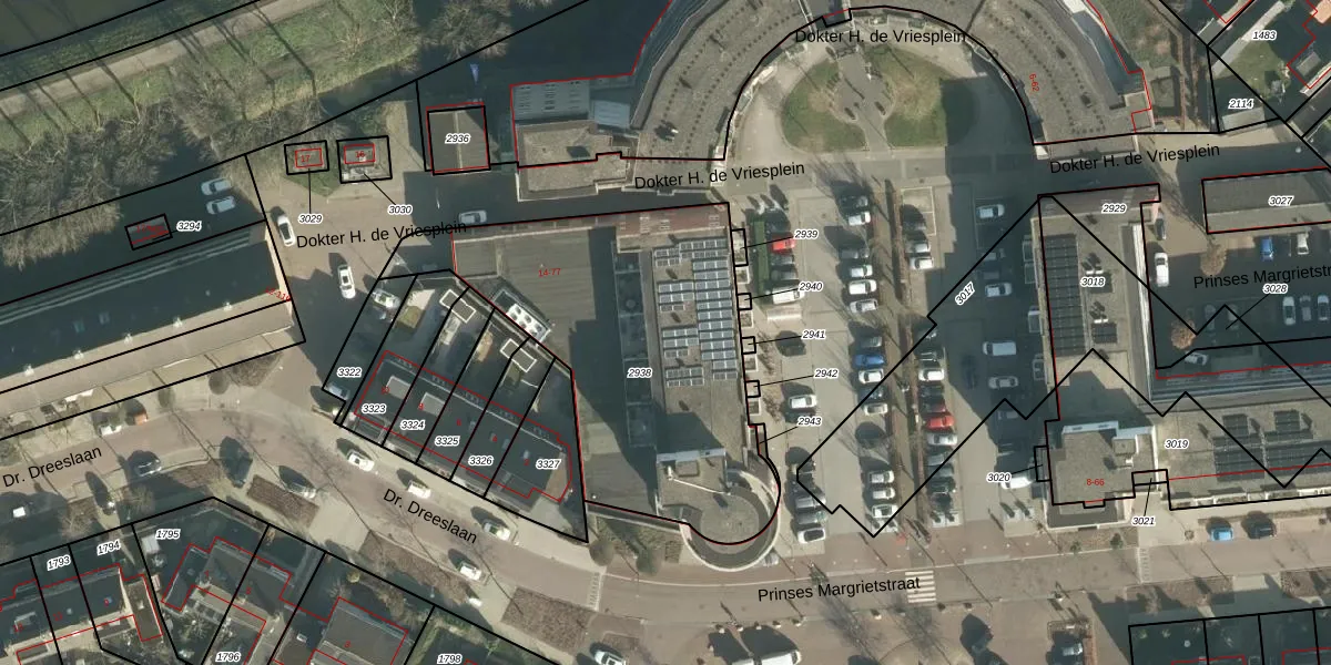 Het perceel waarop Dokter H. de Vriesplein 72 staat heeft een oppervlakte van 1550 m². Dit is een zeer groot perceel. De perceeloppervlakte wordt geregistreerd door het Kadaster. Gedetailleerde informatie over de maten van dit perceel kunt u vinden in het rapport Kadastrale kaart met maatvoering van Dokter H. de Vriesplein 72.