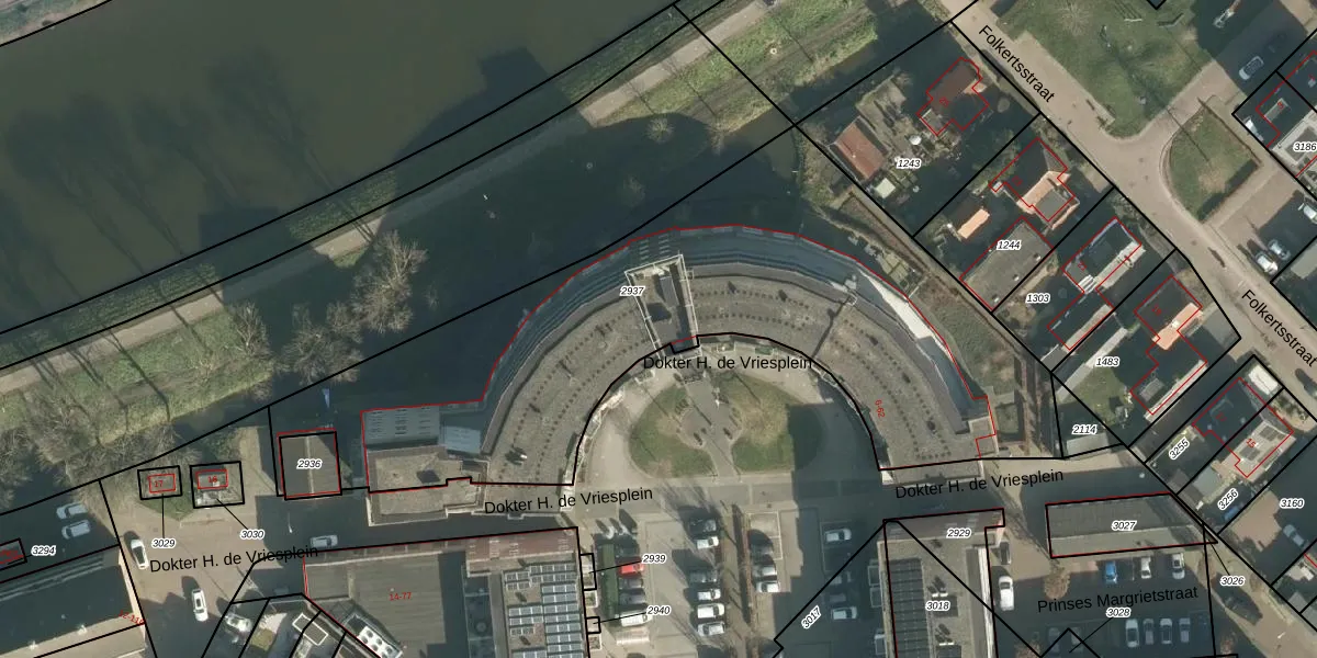 Het perceel waarop Dokter H. de Vriesplein 8 staat heeft een oppervlakte van 2950 m². Dit is een zeer groot perceel. De perceeloppervlakte wordt geregistreerd door het Kadaster. Gedetailleerde informatie over de maten van dit perceel kunt u vinden in het rapport Kadastrale kaart met maatvoering van Dokter H. de Vriesplein 8.