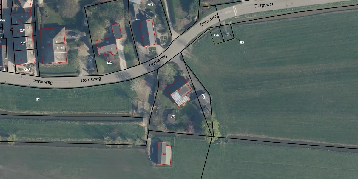 Het perceel waarop Dorpsweg 164 staat heeft een oppervlakte van 955 m². Dit is een groot perceel. De perceeloppervlakte wordt geregistreerd door het Kadaster. Gedetailleerde informatie over de maten van dit perceel kunt u vinden in het rapport Kadastrale kaart met maatvoering van Dorpsweg 164.