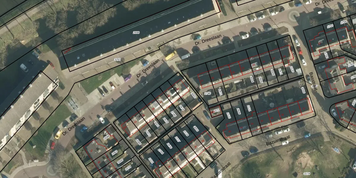 Gebruik de zoekbalk of klik op een perceel voor informatie over de adressen binnen dit perceel.