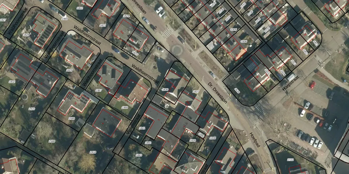 Gebruik de zoekbalk of klik op een perceel voor informatie over de adressen binnen dit perceel.