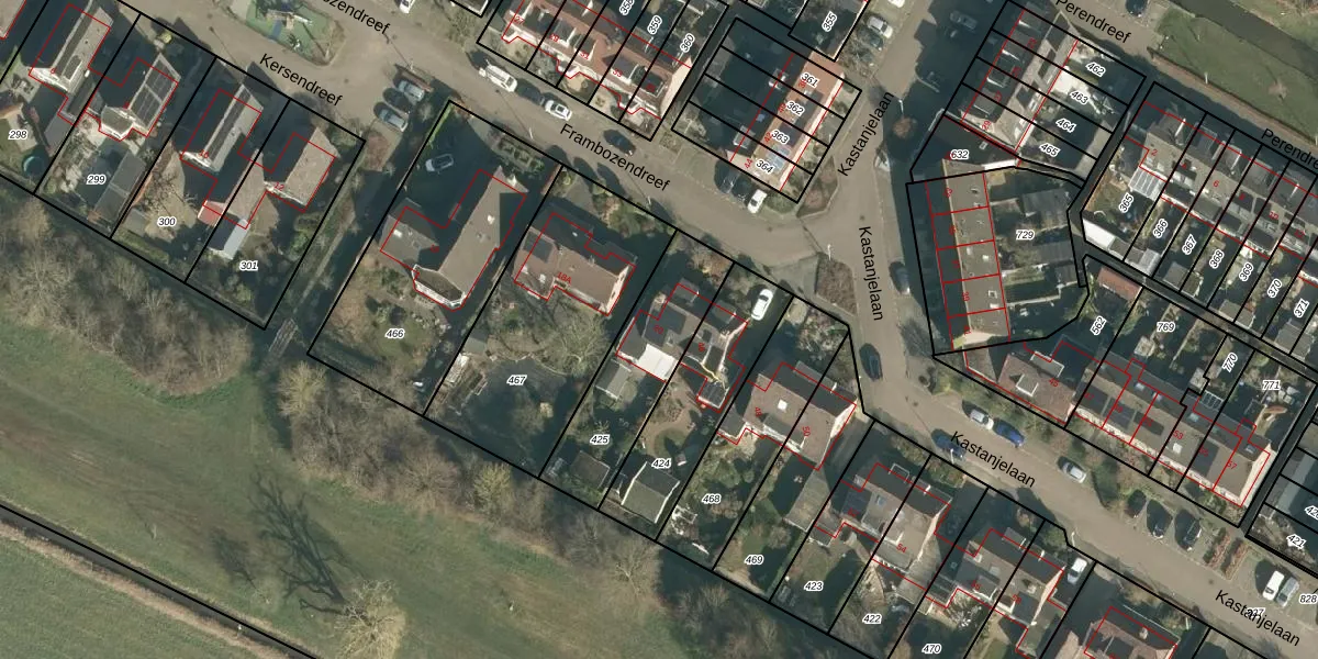 Het perceel waarop Frambozendreef 20 staat heeft een oppervlakte van 433 m². Dit is een groot perceel. De perceeloppervlakte wordt geregistreerd door het Kadaster. Gedetailleerde informatie over de maten van dit perceel kunt u vinden in het rapport Kadastrale kaart met maatvoering van Frambozendreef 20.
