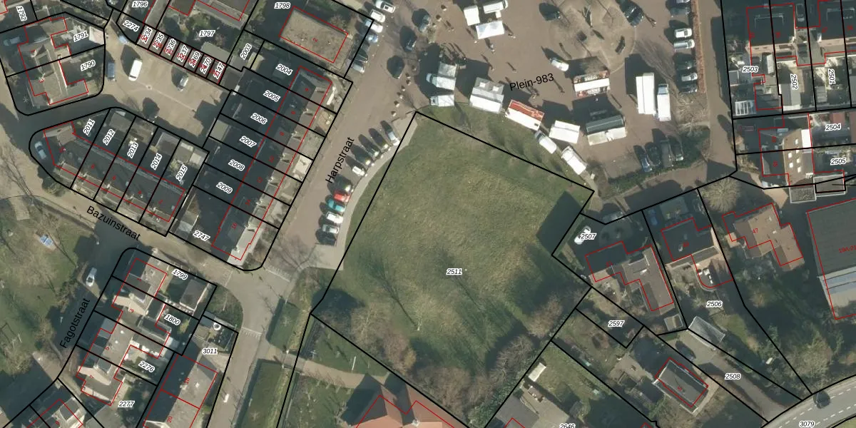 Het perceel waarop Harpstraat 1-K25 staat heeft een oppervlakte van 2890 m². Dit is een zeer groot perceel. De perceeloppervlakte wordt geregistreerd door het Kadaster. Gedetailleerde informatie over de maten van dit perceel kunt u vinden in het rapport Kadastrale kaart met maatvoering van Harpstraat 1-K25.