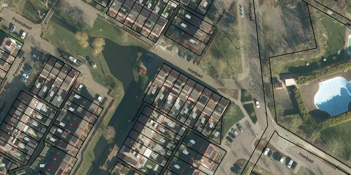 Gebruik de zoekbalk of klik op een perceel voor informatie over de adressen binnen dit perceel.