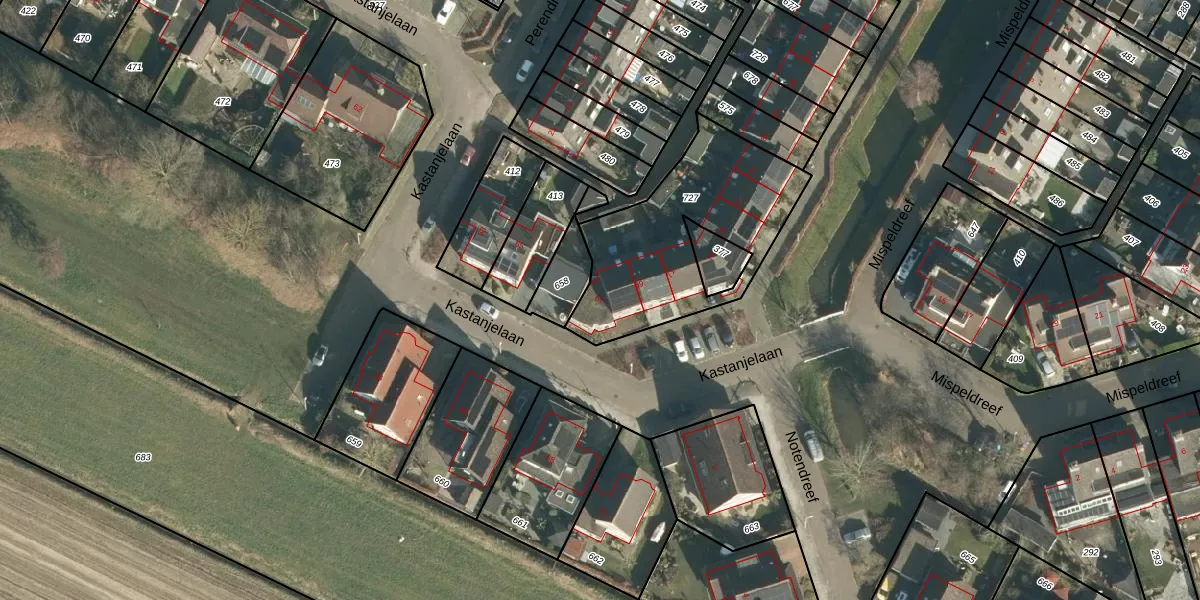 Het perceel waarop Kastanjelaan 67 staat heeft een oppervlakte van 737 m². Dit is een groot perceel. De perceeloppervlakte wordt geregistreerd door het Kadaster. Gedetailleerde informatie over de maten van dit perceel kunt u vinden in het rapport Kadastrale kaart met maatvoering van Kastanjelaan 67.