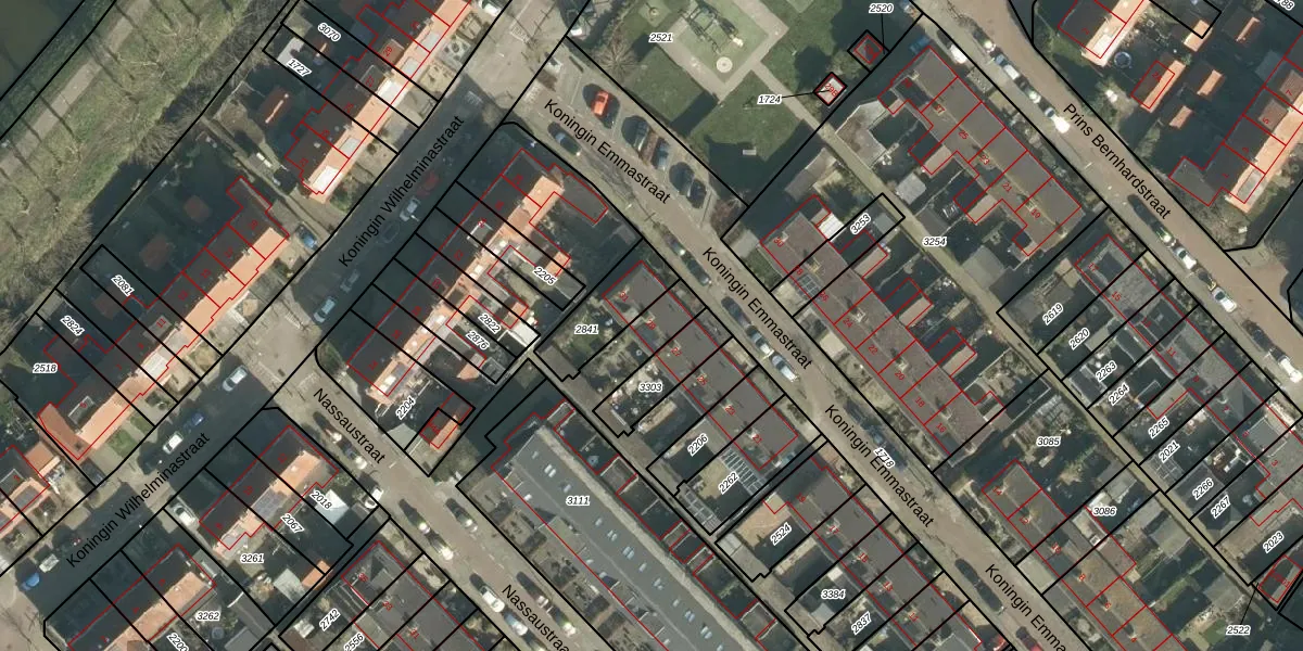 Het perceel waarop Koningin Emmastraat 29 staat heeft een oppervlakte van 2803 m². Dit is een zeer groot perceel. De perceeloppervlakte wordt geregistreerd door het Kadaster. Gedetailleerde informatie over de maten van dit perceel kunt u vinden in het rapport Kadastrale kaart met maatvoering van Koningin Emmastraat 29.