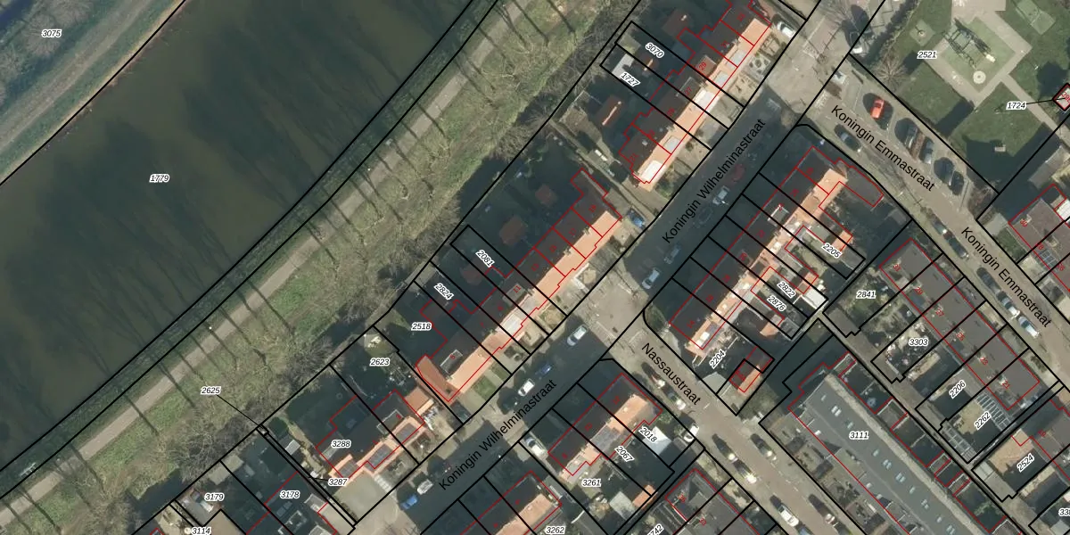 Het perceel waarop Koningin Wilhelminastraat 13 staat heeft een oppervlakte van 3422 m². Dit is een zeer groot perceel. De perceeloppervlakte wordt geregistreerd door het Kadaster. Gedetailleerde informatie over de maten van dit perceel kunt u vinden in het rapport Kadastrale kaart met maatvoering van Koningin Wilhelminastraat 13.