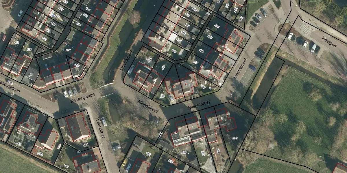 Het perceel waarop Mispeldreef 19 staat heeft een oppervlakte van 258 m². Dit is een middelgroot perceel. De perceeloppervlakte wordt geregistreerd door het Kadaster. Gedetailleerde informatie over de maten van dit perceel kunt u vinden in het rapport Kadastrale kaart met maatvoering van Mispeldreef 19.