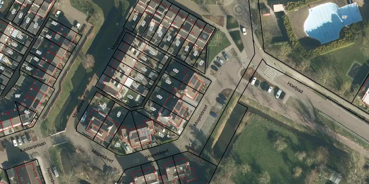 Gebruik de zoekbalk of klik op een perceel voor informatie over de adressen binnen dit perceel.