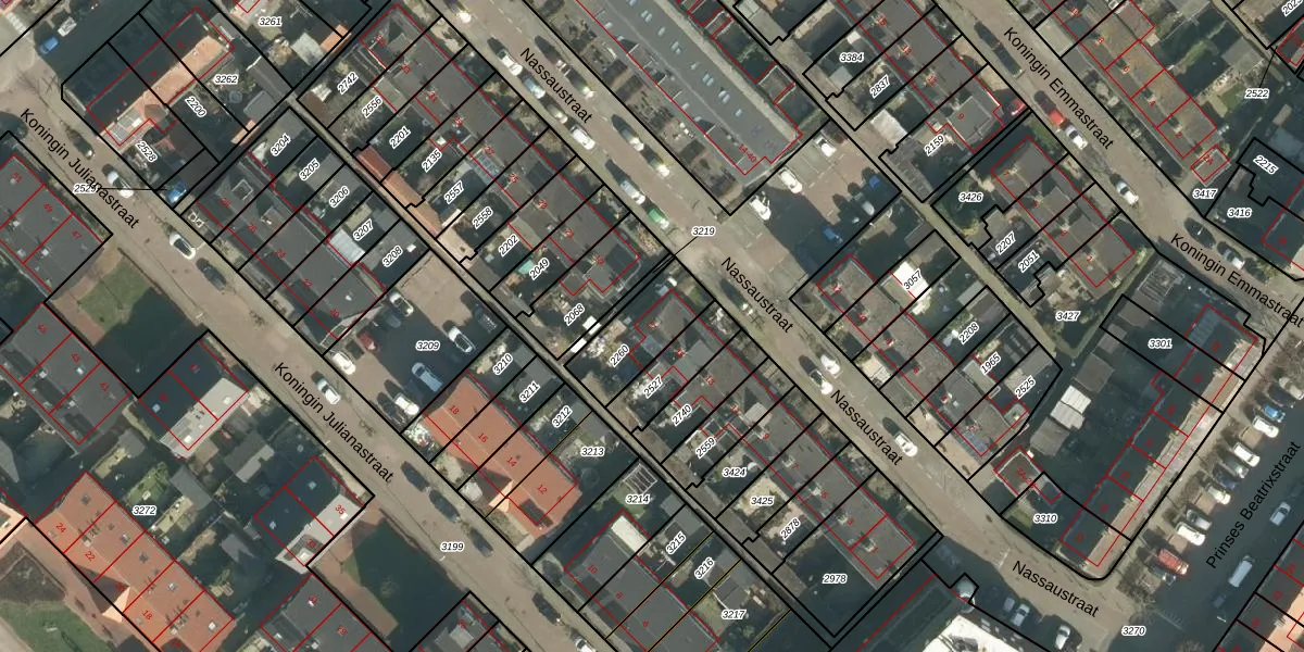 Het perceel waarop Nassaustraat 17 staat heeft een oppervlakte van 214 m². Dit is een middelgroot perceel. De perceeloppervlakte wordt geregistreerd door het Kadaster. Gedetailleerde informatie over de maten van dit perceel kunt u vinden in het rapport Kadastrale kaart met maatvoering van Nassaustraat 17.