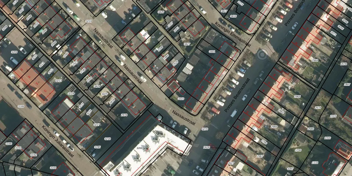 Het perceel waarop Nassaustraat 2-A staat heeft een oppervlakte van 2803 m². Dit is een zeer groot perceel. De perceeloppervlakte wordt geregistreerd door het Kadaster. Gedetailleerde informatie over de maten van dit perceel kunt u vinden in het rapport Kadastrale kaart met maatvoering van Nassaustraat 2-A.