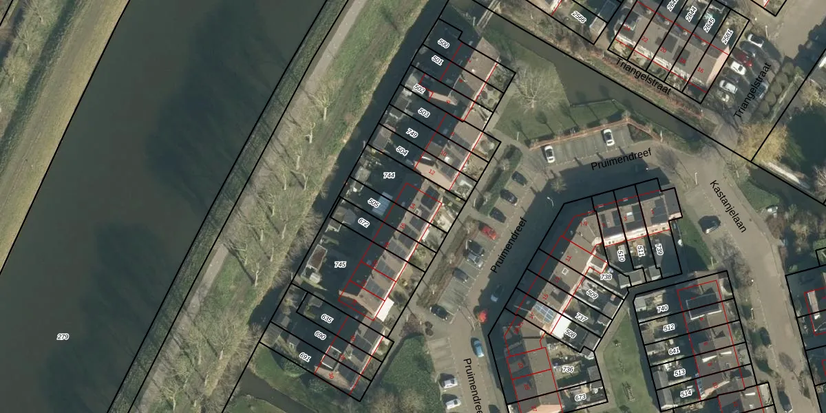 Pruimendreef 14 is gelegen op kadastraal perceel AKL00D744. Deze kadastrale aanduiding is uniek en wordt gebruikt door het Kadaster om eigendomsrechten en andere zakelijke rechten vast te leggen. Het perceel maakt onderdeel uit van de kadastrale gemeente Arkel.