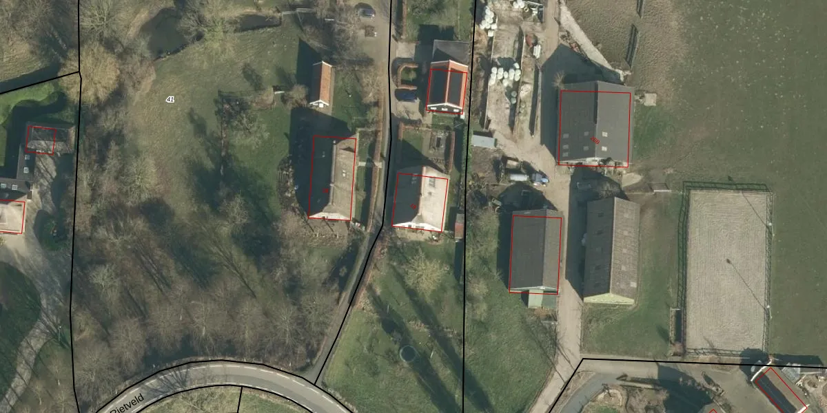 Het perceel waarop Rietveld 19 staat heeft een oppervlakte van 8420 m². Dit is een zeer groot perceel. De perceeloppervlakte wordt geregistreerd door het Kadaster. Gedetailleerde informatie over de maten van dit perceel kunt u vinden in het rapport Kadastrale kaart met maatvoering van Rietveld 19.