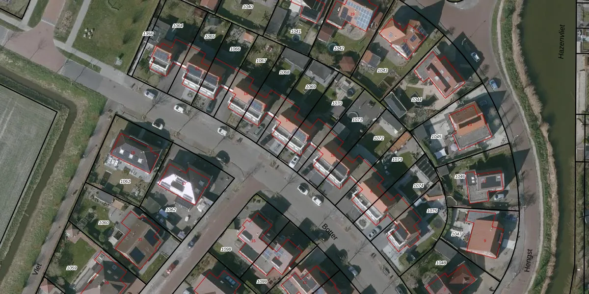 Het perceel waarop Botter 12 staat heeft een oppervlakte van 341 m². Dit is een groot perceel. De perceeloppervlakte wordt geregistreerd door het Kadaster. Gedetailleerde informatie over de maten van dit perceel kunt u vinden in het rapport Kadastrale kaart met maatvoering van Botter 12.