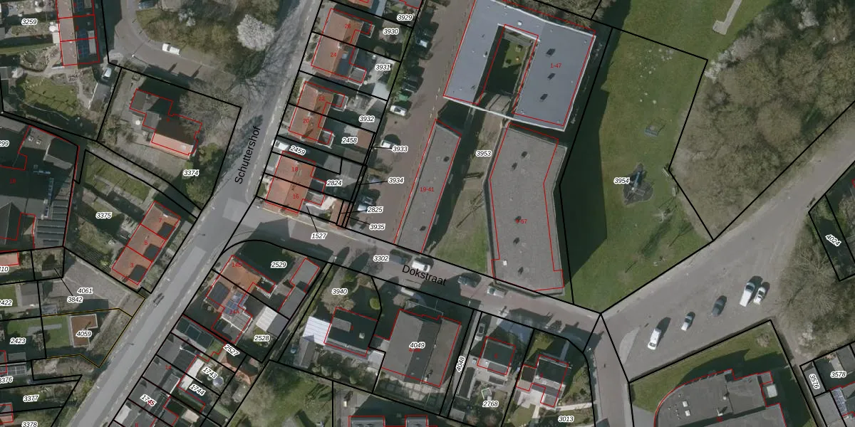 Het perceel waarop Dokstraat 41 staat heeft een oppervlakte van 3027 m². Dit is een zeer groot perceel. De perceeloppervlakte wordt geregistreerd door het Kadaster. Gedetailleerde informatie over de maten van dit perceel kunt u vinden in het rapport Kadastrale kaart met maatvoering van Dokstraat 41.