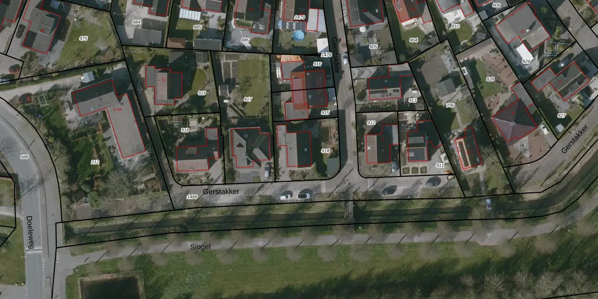 Het perceel waarop Gerstakker 5 staat heeft een oppervlakte van 441 m². Dit is een groot perceel. De perceeloppervlakte wordt geregistreerd door het Kadaster. Gedetailleerde informatie over de maten van dit perceel kunt u vinden in het rapport Kadastrale kaart met maatvoering van Gerstakker 5.