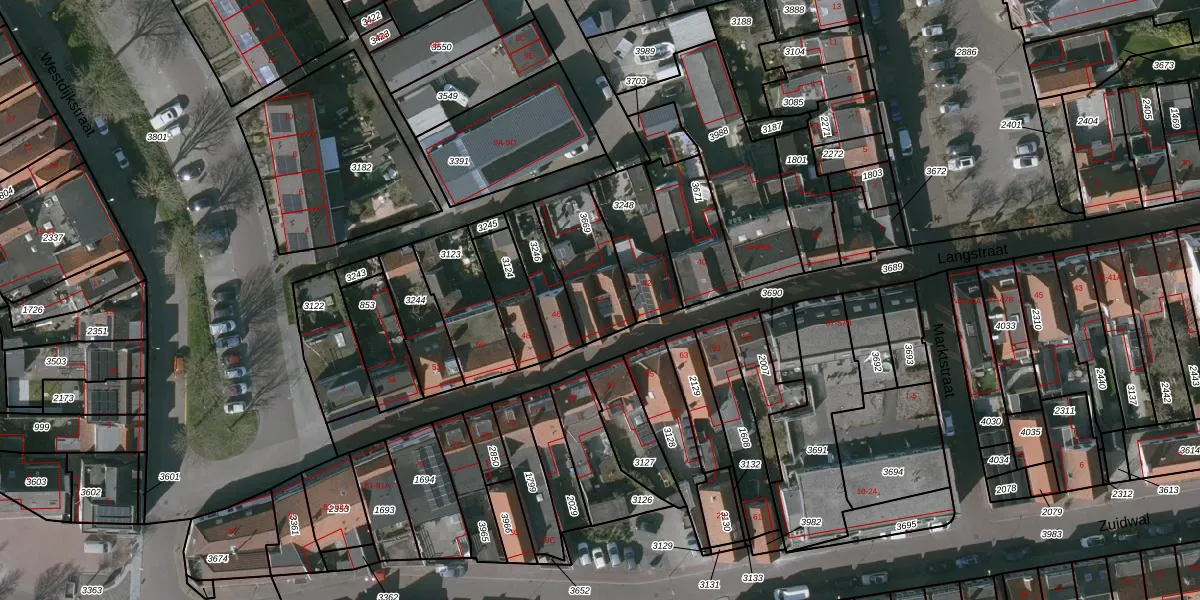 Langstraat 44 is gelegen op kadastraal perceel ANM00G3669. Deze kadastrale aanduiding is uniek en wordt gebruikt door het Kadaster om eigendomsrechten en andere zakelijke rechten vast te leggen. Het perceel maakt onderdeel uit van de kadastrale gemeente Arnemuiden.
