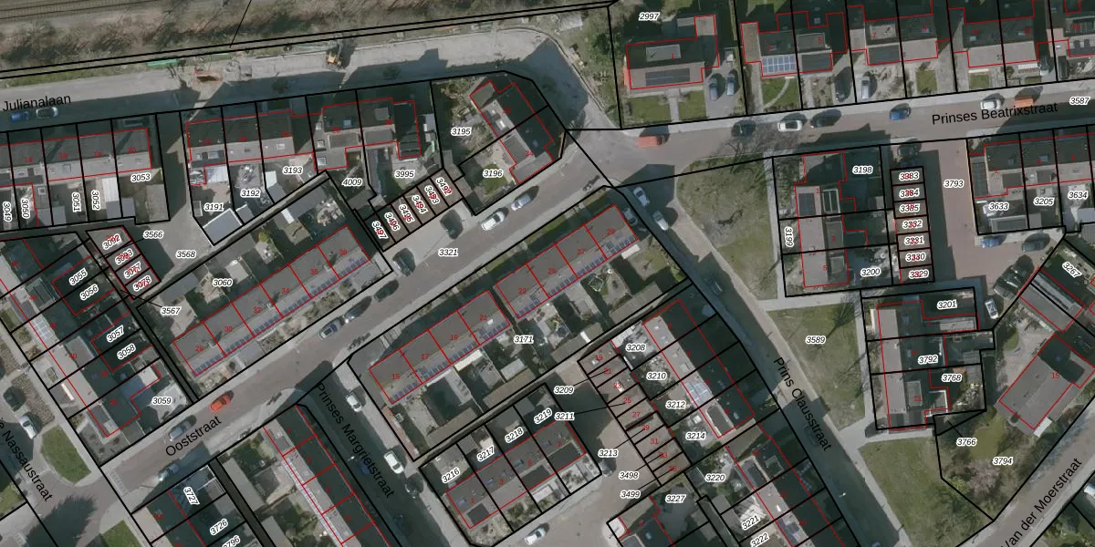Het perceel waarop Ooststraat 25 staat heeft een oppervlakte van 1348 m². Dit is een zeer groot perceel. De perceeloppervlakte wordt geregistreerd door het Kadaster. Gedetailleerde informatie over de maten van dit perceel kunt u vinden in het rapport Kadastrale kaart met maatvoering van Ooststraat 25.