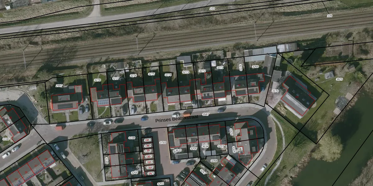 Het perceel waarop Prinses Beatrixstraat 13 staat heeft een oppervlakte van 227 m². Dit is een middelgroot perceel. De perceeloppervlakte wordt geregistreerd door het Kadaster. Gedetailleerde informatie over de maten van dit perceel kunt u vinden in het rapport Kadastrale kaart met maatvoering van Prinses Beatrixstraat 13.