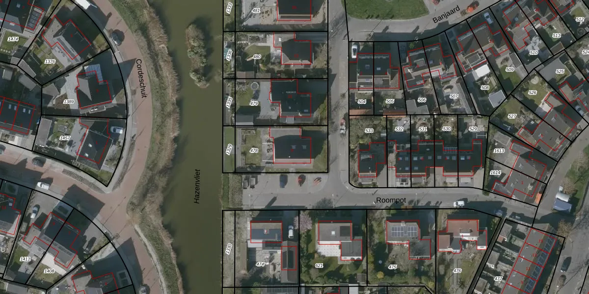 Het perceel waarop Roompot 9 staat heeft een oppervlakte van 504 m². Dit is een groot perceel. De perceeloppervlakte wordt geregistreerd door het Kadaster. Gedetailleerde informatie over de maten van dit perceel kunt u vinden in het rapport Kadastrale kaart met maatvoering van Roompot 9.