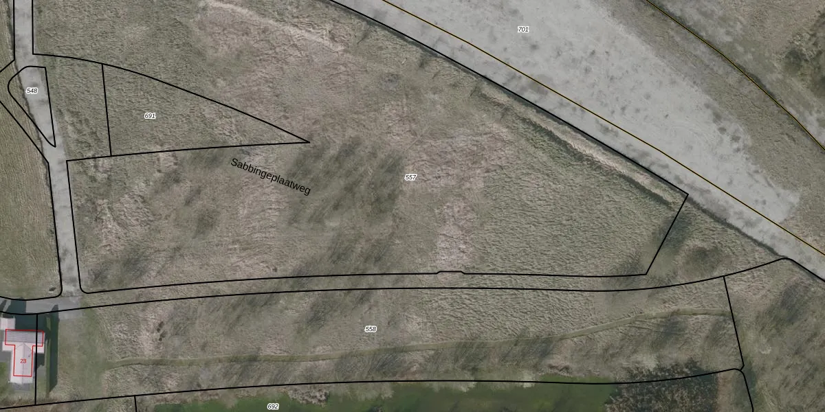 Het perceel waarop Sabbingeplaatweg 1 staat heeft een oppervlakte van 8294 m². Dit is een zeer groot perceel. De perceeloppervlakte wordt geregistreerd door het Kadaster. Gedetailleerde informatie over de maten van dit perceel kunt u vinden in het rapport Kadastrale kaart met maatvoering van Sabbingeplaatweg 1.