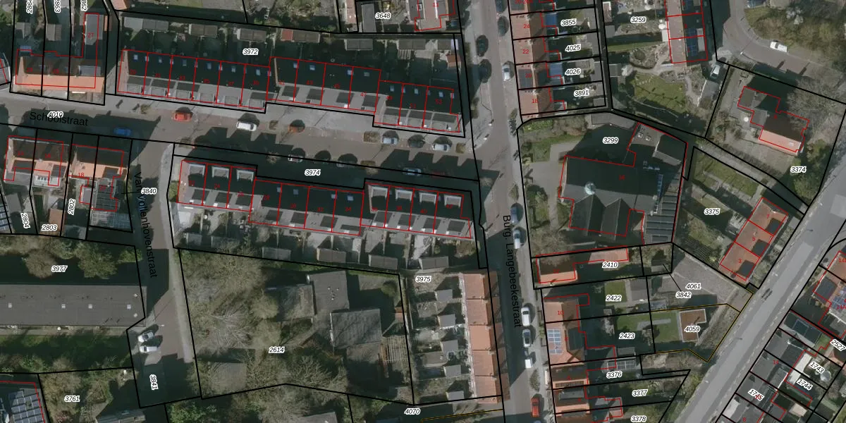 Het perceel waarop Schoolstraat 40 staat heeft een oppervlakte van 2105 m². Dit is een zeer groot perceel. De perceeloppervlakte wordt geregistreerd door het Kadaster. Gedetailleerde informatie over de maten van dit perceel kunt u vinden in het rapport Kadastrale kaart met maatvoering van Schoolstraat 40.