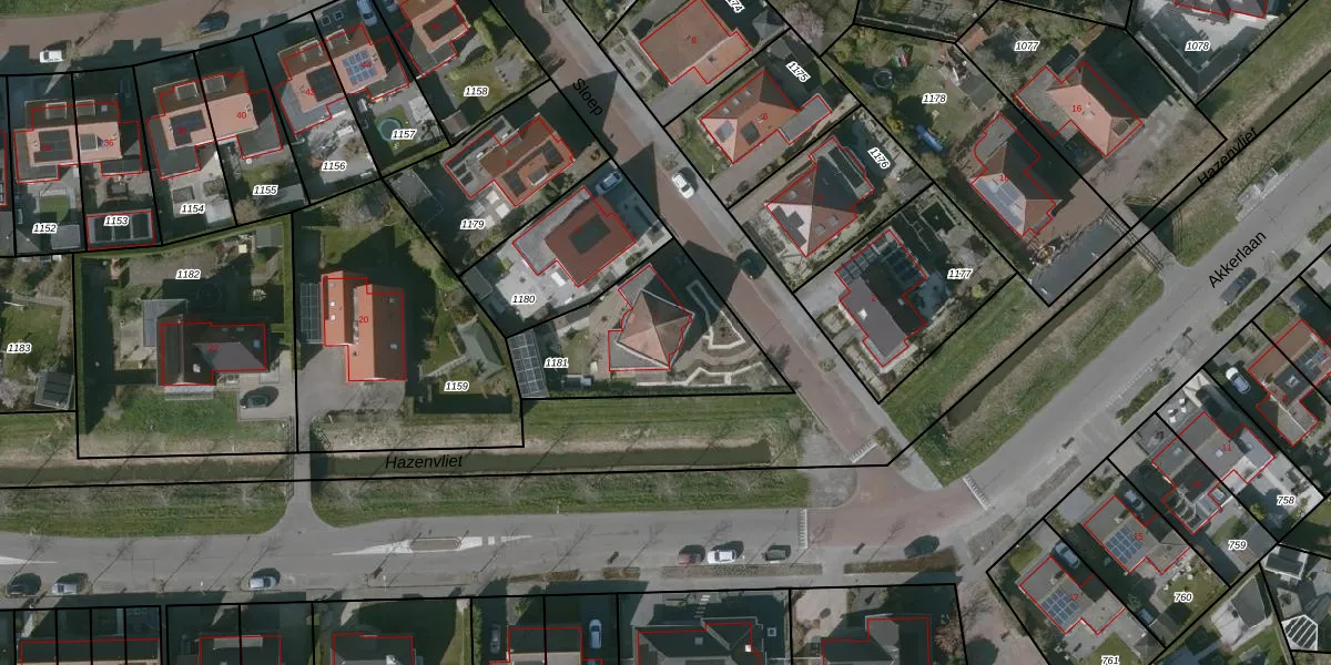Het perceel waarop Sloep 1 staat heeft een oppervlakte van 594 m². Dit is een groot perceel. De perceeloppervlakte wordt geregistreerd door het Kadaster. Gedetailleerde informatie over de maten van dit perceel kunt u vinden in het rapport Kadastrale kaart met maatvoering van Sloep 1.