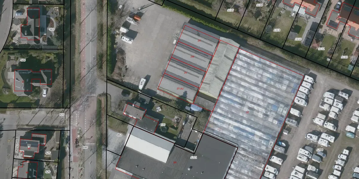 Het perceel waarop Van Cittersweg 2-T staat heeft een oppervlakte van 1,5 ha. Dit is een zeer groot perceel. De perceeloppervlakte wordt geregistreerd door het Kadaster. Gedetailleerde informatie over de maten van dit perceel kunt u vinden in het rapport Kadastrale kaart met maatvoering van Van Cittersweg 2-T.