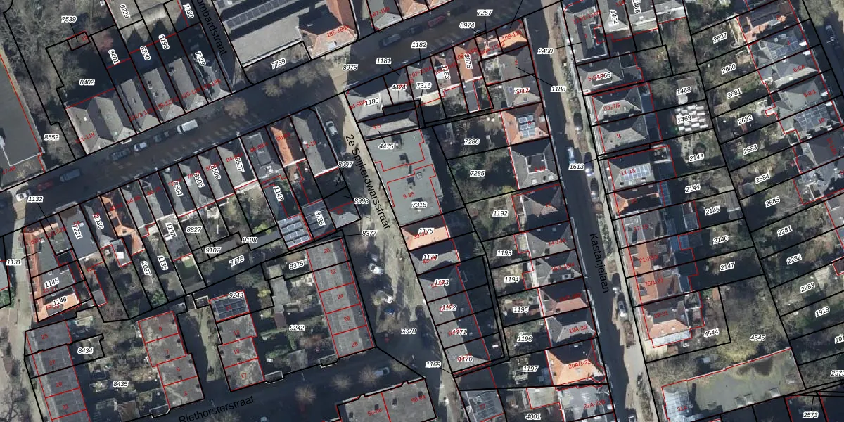 Het perceel waarop 2e Spijkerdwarsstraat 25 staat heeft een oppervlakte van 357 m². Dit is een groot perceel. De perceeloppervlakte wordt geregistreerd door het Kadaster. Gedetailleerde informatie over de maten van dit perceel kunt u vinden in het rapport Kadastrale kaart met maatvoering van 2e Spijkerdwarsstraat 25.