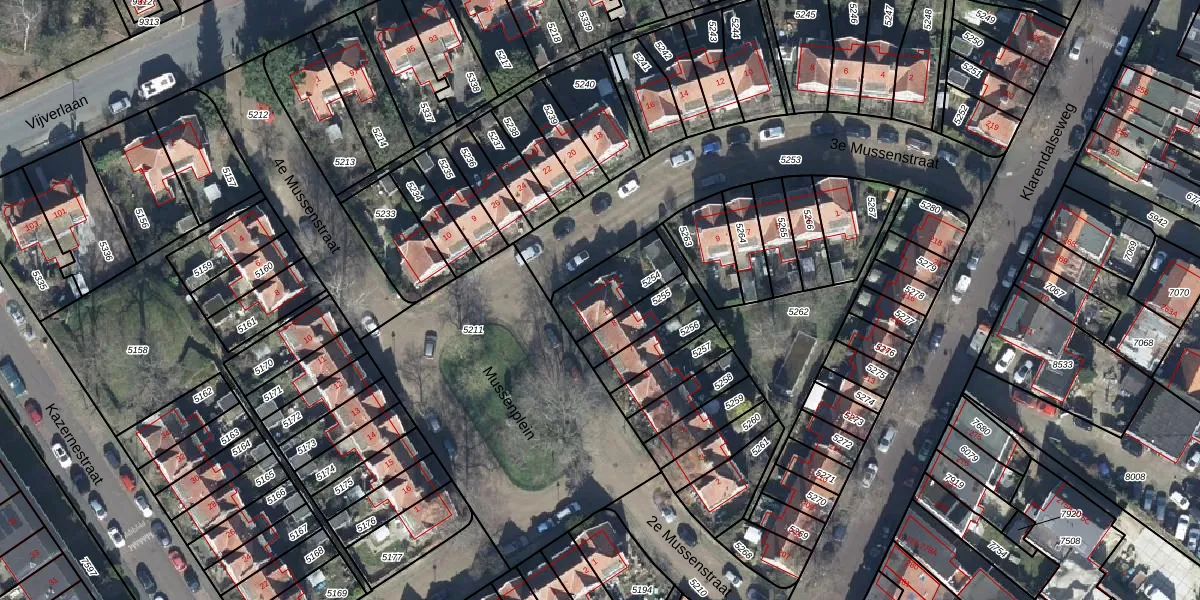Gebruik de zoekbalk of klik op een perceel voor informatie over de adressen binnen dit perceel.