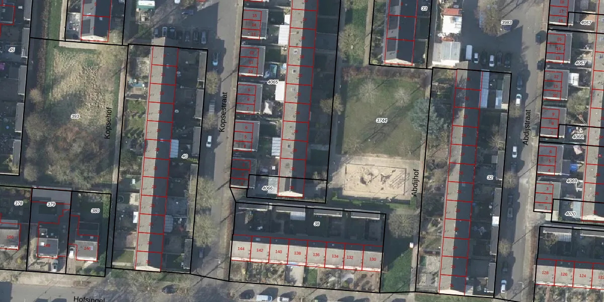 Het perceel waarop Abdijhof 28 staat heeft een oppervlakte van 2366 m². Dit is een zeer groot perceel. De perceeloppervlakte wordt geregistreerd door het Kadaster. Gedetailleerde informatie over de maten van dit perceel kunt u vinden in het rapport Kadastrale kaart met maatvoering van Abdijhof 28.
