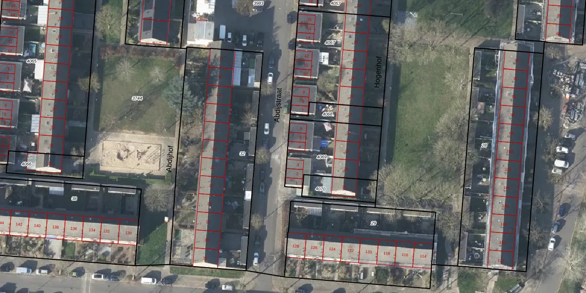 Het perceel waarop Abdijstraat 4 staat heeft een oppervlakte van 615 m². Dit is een groot perceel. De perceeloppervlakte wordt geregistreerd door het Kadaster. Gedetailleerde informatie over de maten van dit perceel kunt u vinden in het rapport Kadastrale kaart met maatvoering van Abdijstraat 4.