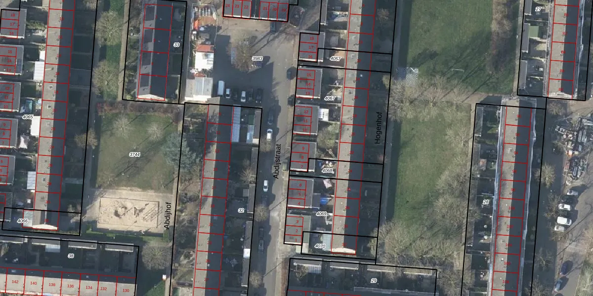 Abdijstraat 9 is gelegen op kadastraal perceel AHM01W4067. Deze kadastrale aanduiding is uniek en wordt gebruikt door het Kadaster om eigendomsrechten en andere zakelijke rechten vast te leggen. Het perceel maakt onderdeel uit van de kadastrale gemeente Arnhem.