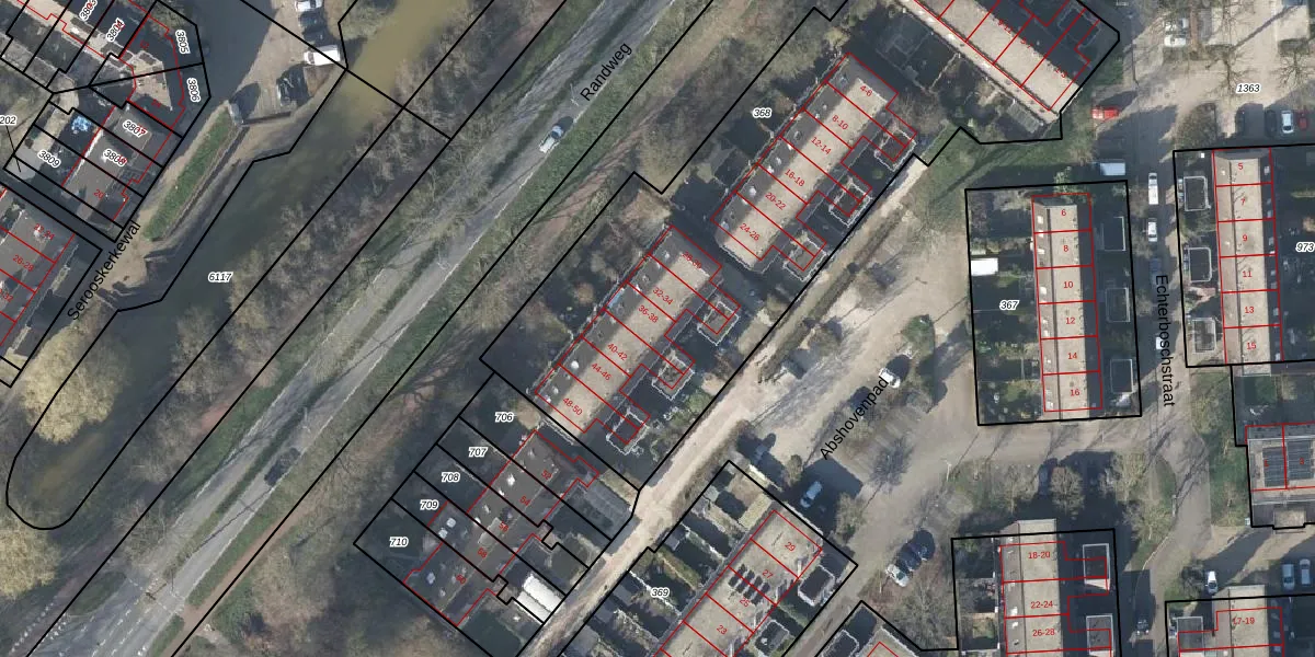 Het perceel waarop Abshovenpad 36 staat heeft een oppervlakte van 3071 m². Dit is een zeer groot perceel. De perceeloppervlakte wordt geregistreerd door het Kadaster. Gedetailleerde informatie over de maten van dit perceel kunt u vinden in het rapport Kadastrale kaart met maatvoering van Abshovenpad 36.