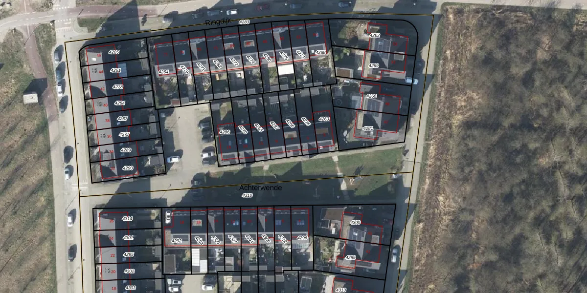 Gebruik de zoekbalk of klik op een perceel voor informatie over de adressen binnen dit perceel.