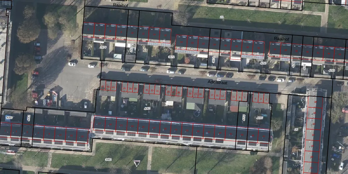 Het perceel waarop Adelstraat 27 staat heeft een oppervlakte van 3615 m². Dit is een zeer groot perceel. De perceeloppervlakte wordt geregistreerd door het Kadaster. Gedetailleerde informatie over de maten van dit perceel kunt u vinden in het rapport Kadastrale kaart met maatvoering van Adelstraat 27.