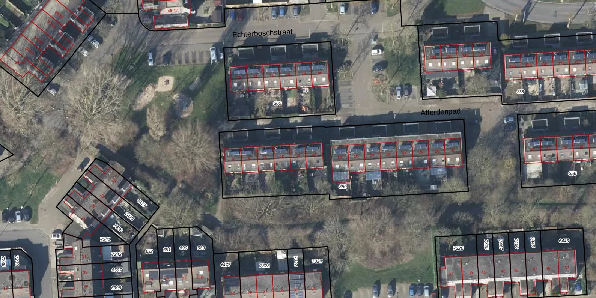 Het perceel waarop Afferdenpad 12 staat heeft een oppervlakte van 1939 m². Dit is een zeer groot perceel. De perceeloppervlakte wordt geregistreerd door het Kadaster. Gedetailleerde informatie over de maten van dit perceel kunt u vinden in het rapport Kadastrale kaart met maatvoering van Afferdenpad 12.