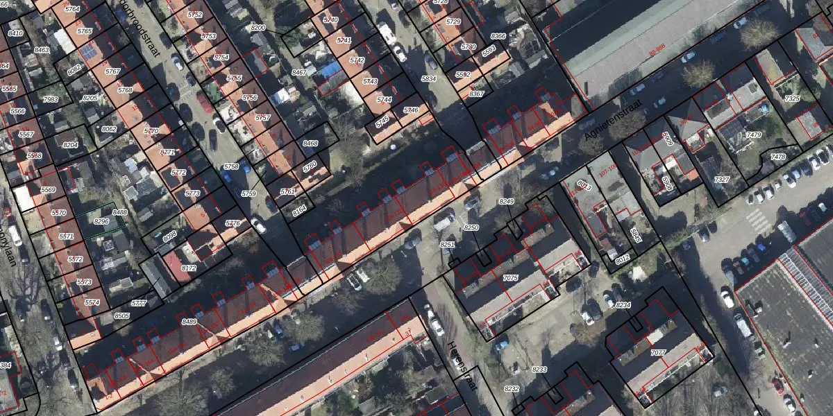 Het perceel waarop Agnietenstraat 116 staat heeft een oppervlakte van 2401 m². Dit is een zeer groot perceel. De perceeloppervlakte wordt geregistreerd door het Kadaster. Gedetailleerde informatie over de maten van dit perceel kunt u vinden in het rapport Kadastrale kaart met maatvoering van Agnietenstraat 116.